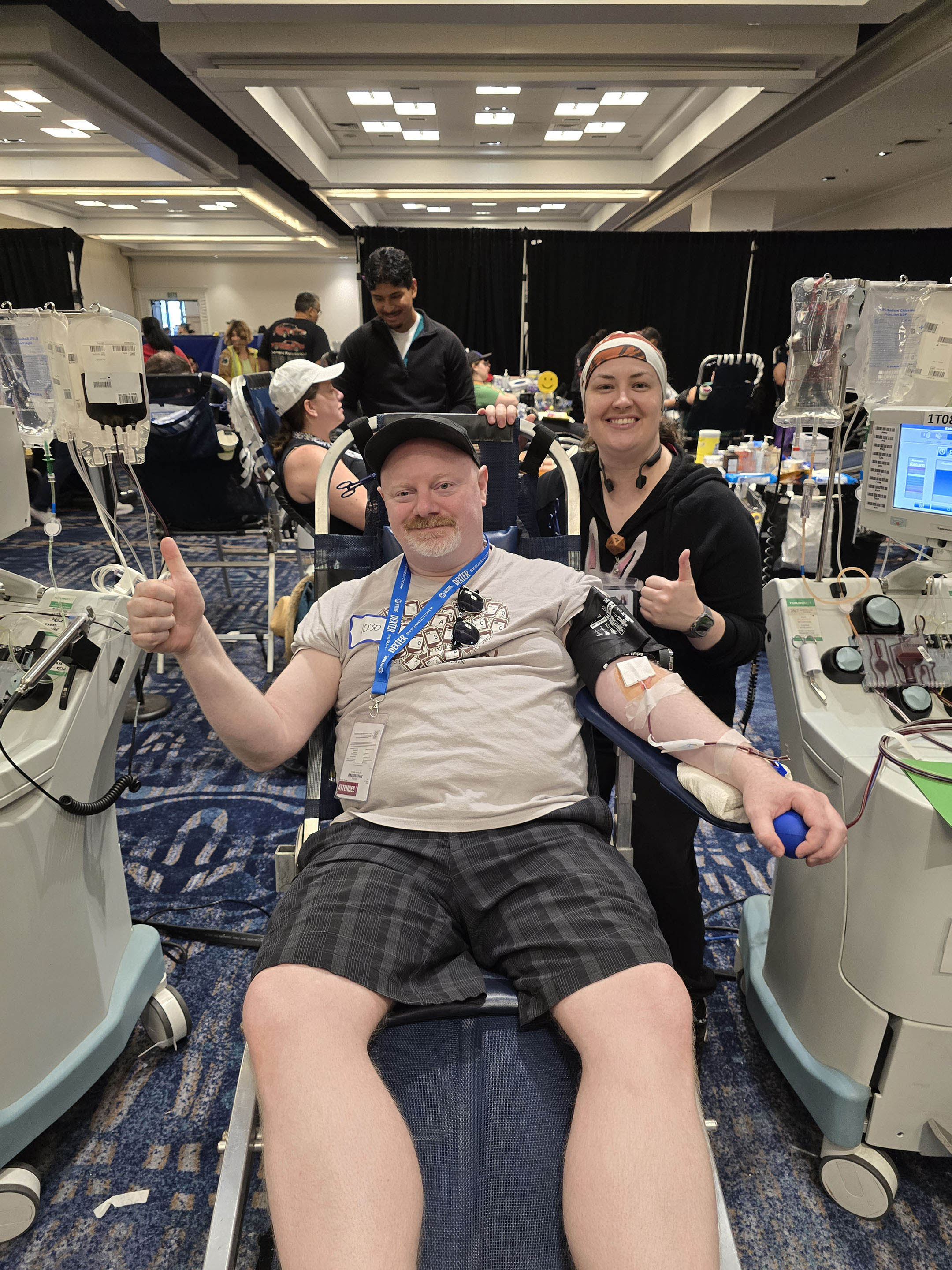 During my donation, several people who were recipients of donations collected at SDCC came up to talk. This was an amazing experience. Usually, I get a notification when my blood is used, but this was such a feel-good moment.