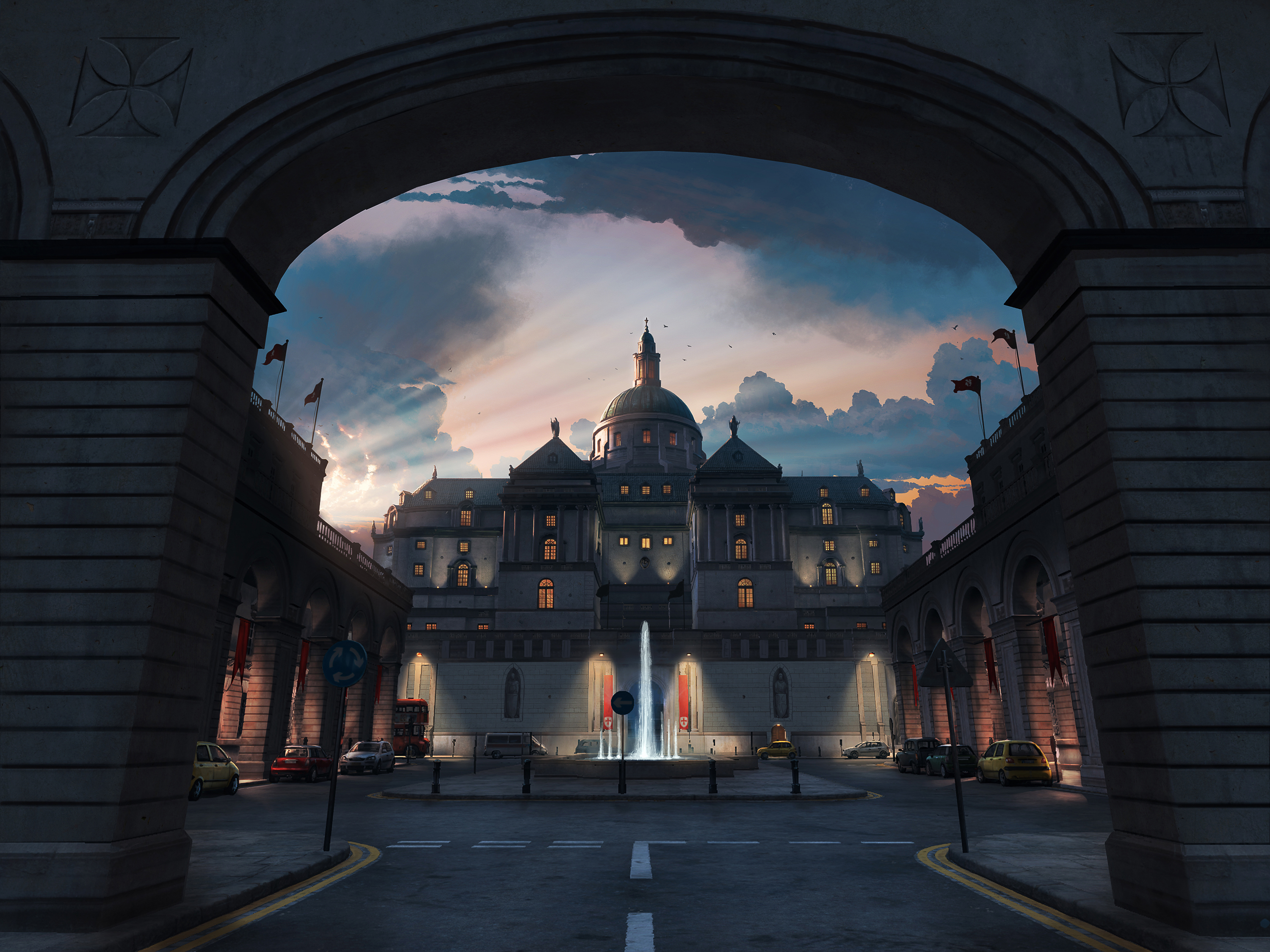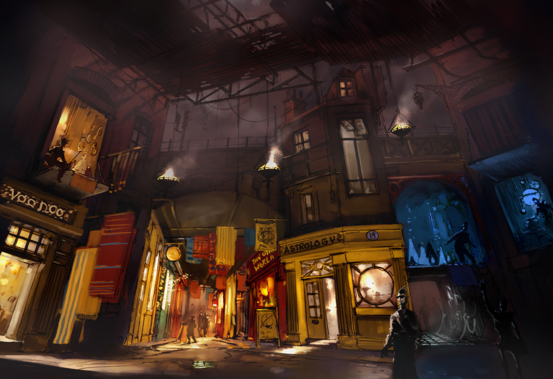 That little more being a load of concept work for the game. Locations, creatures, and characters can be see though out the list below. But there are three in there that should and shouldn't stand out to you. The in game views of each societies headquarters is down there for your gawking pleasure. Try to figure out which is which. For being secret, they sure do slap their emblem all over the HQ. That should help you figure it out now. Hells I'll even throw in the emblems with name to help you there.